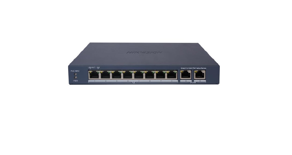 - 8 × 10/100 Mbps PoE ports,2 × Gigabit RJ45 port
